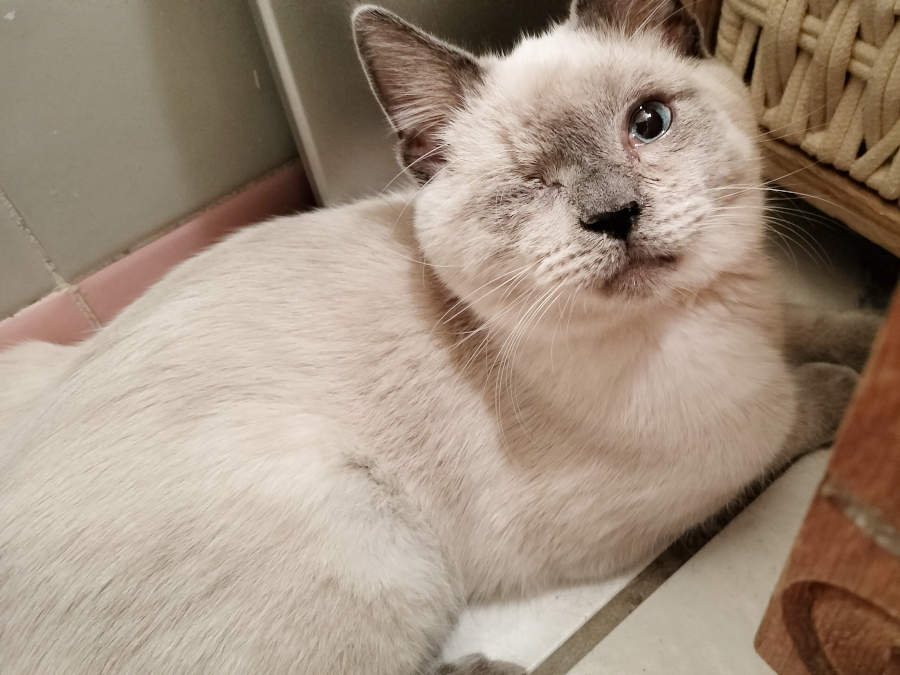 We tried to do the customary thing and set him up in the bathroom—a tiny space where he could feel safe while he acclimated to his new environment...