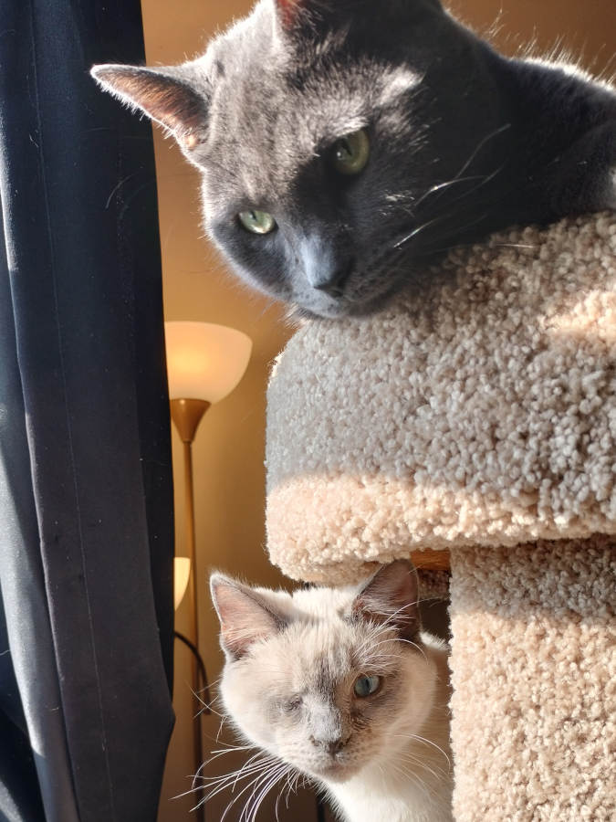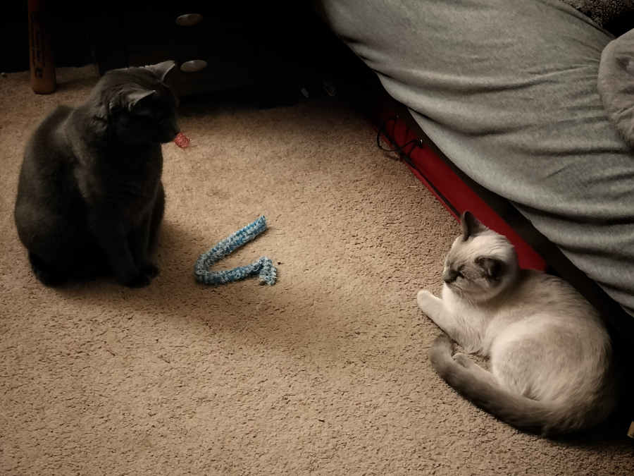 We stopped by my parents' on our way home—just for a minute so they could meet their new grandcat.