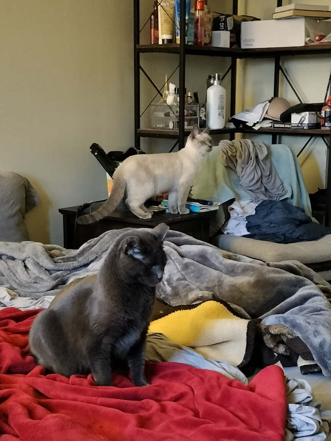 And third, while we've returned to the subject of Ahlina, what exactly is that loving girlfriend of yours doing while you're in such terrible pain, Taylor? Why can't she find a way to get over to the trailer and take care of the cats? The cats belong to both of you; so, why is it only your problem (and then, magically, our problem) while she sits around doing nothing?