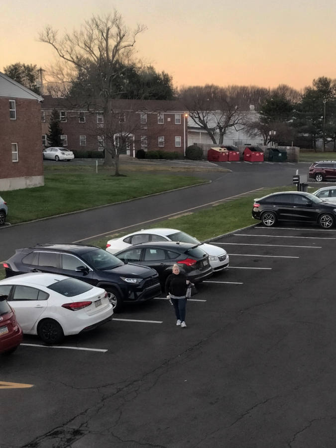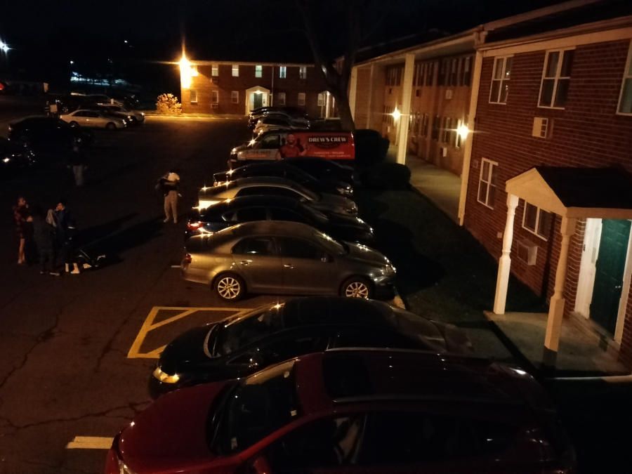 We ordered pizza from Bambino's for dinner; and while we were sitting eating it at the kitchen table, we heard a loud car stereo and a bunch of commotion down in the parking lot.