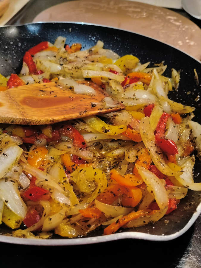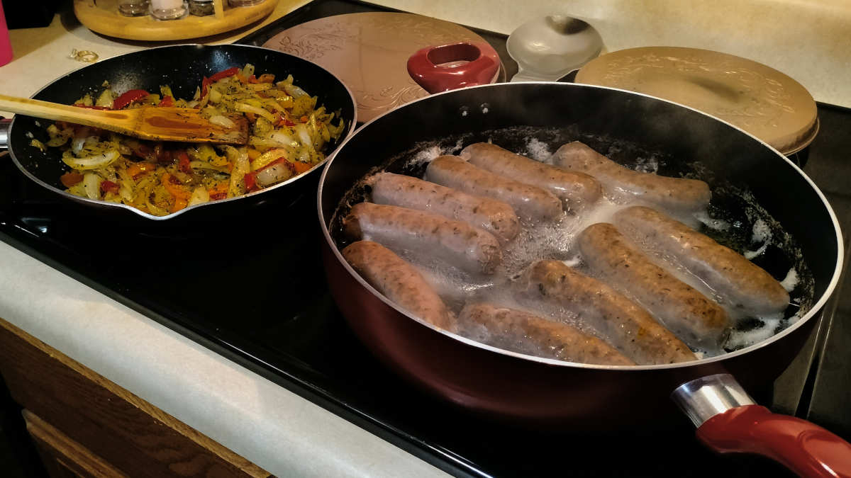 On Monday evening, Athennia flirted with the idea of making steak for dinner; but then she made sausage, peppers, and rotini instead...