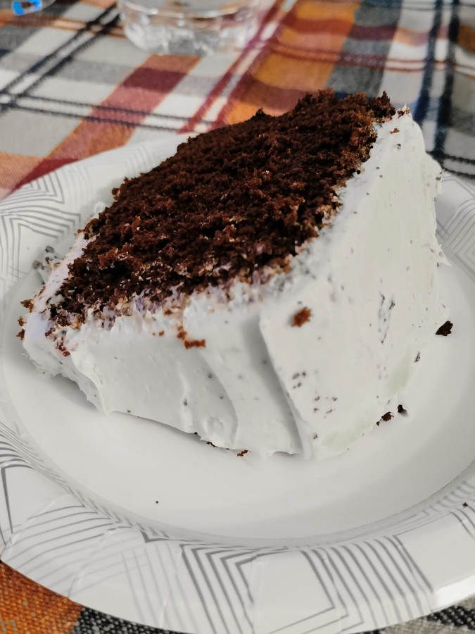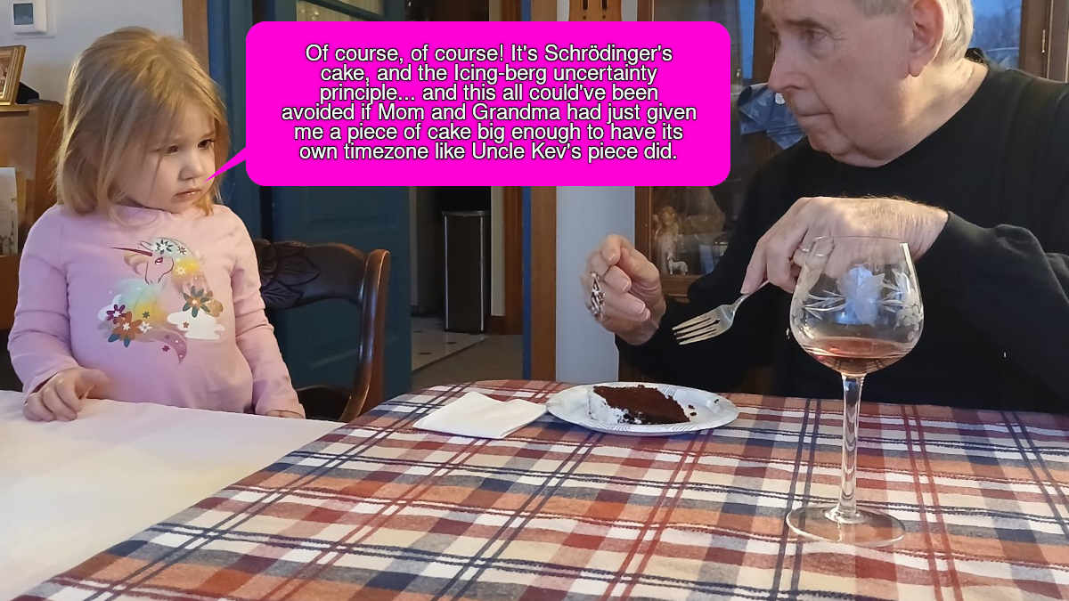 Hannah requested that her sliver of cake remain upright on the plate—which meant it was time for a quick science lesson...