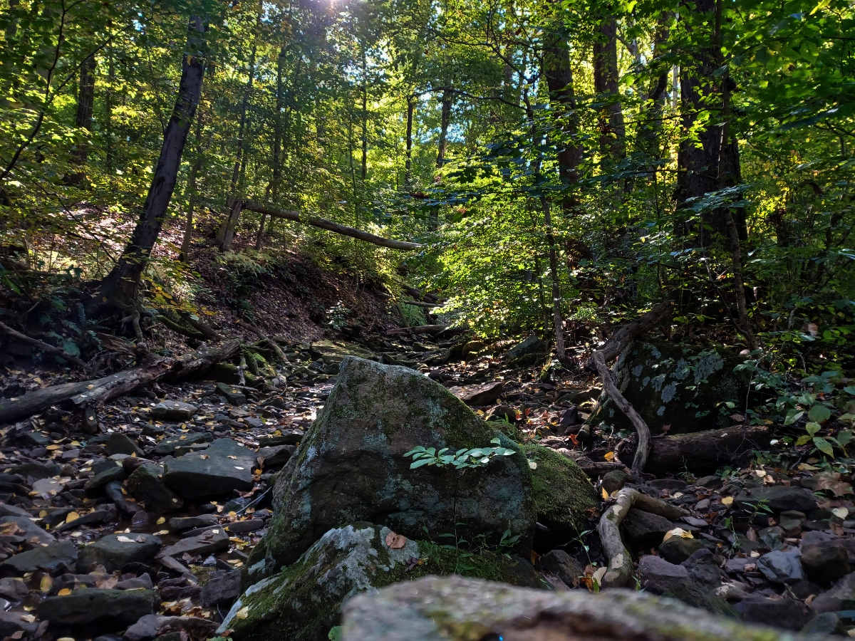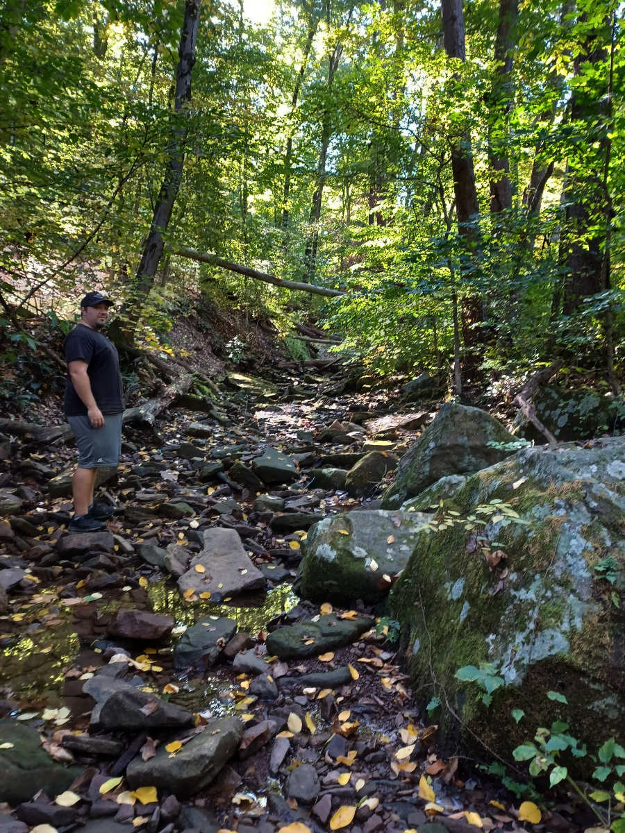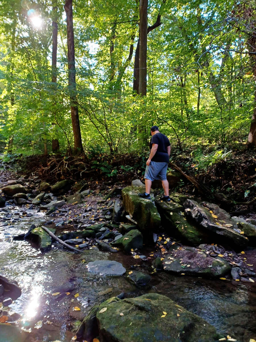 We decided to backtrack a bit and hop on an actual trail instead of parkouring through the creek all the way back to the car...
