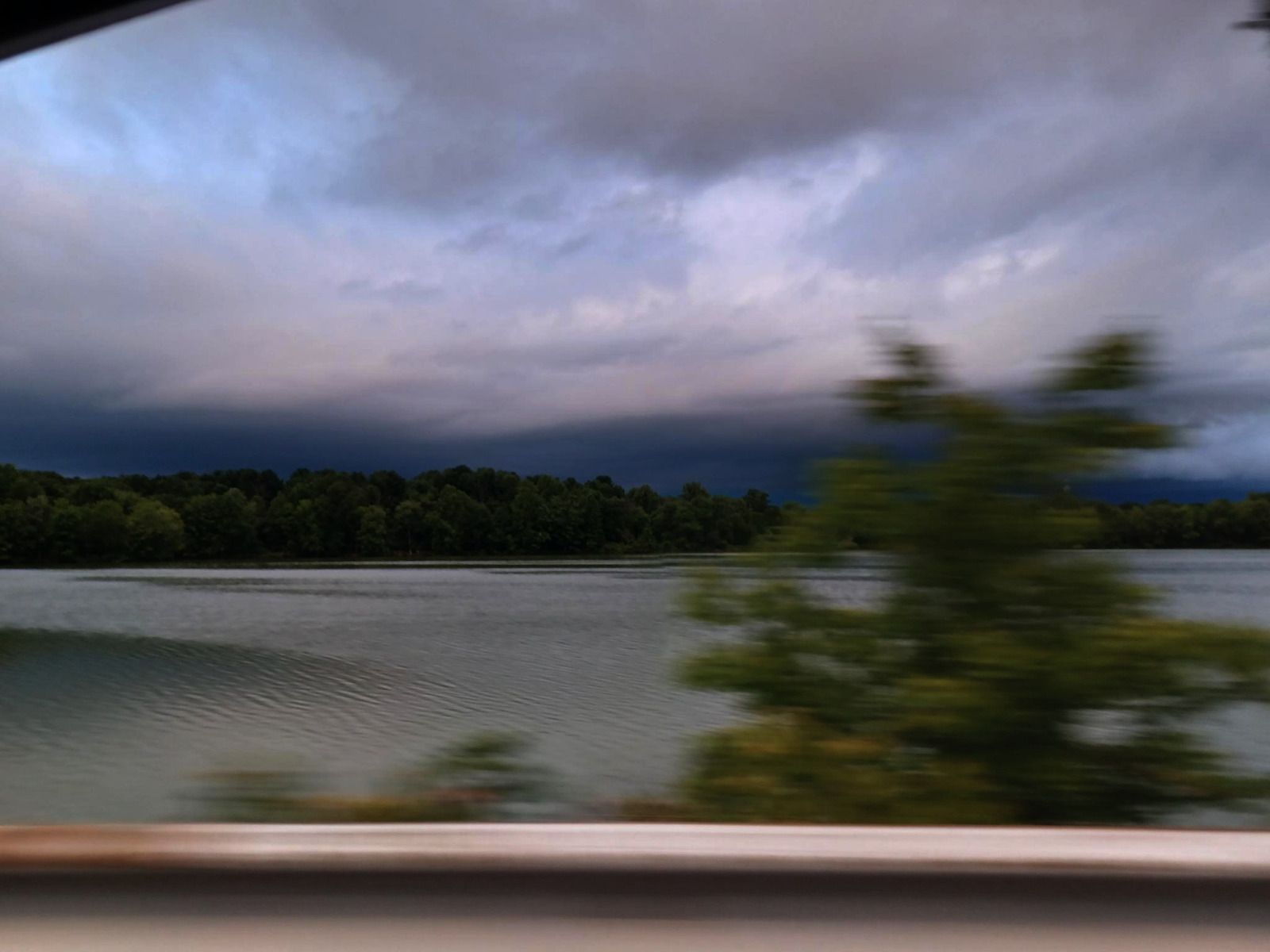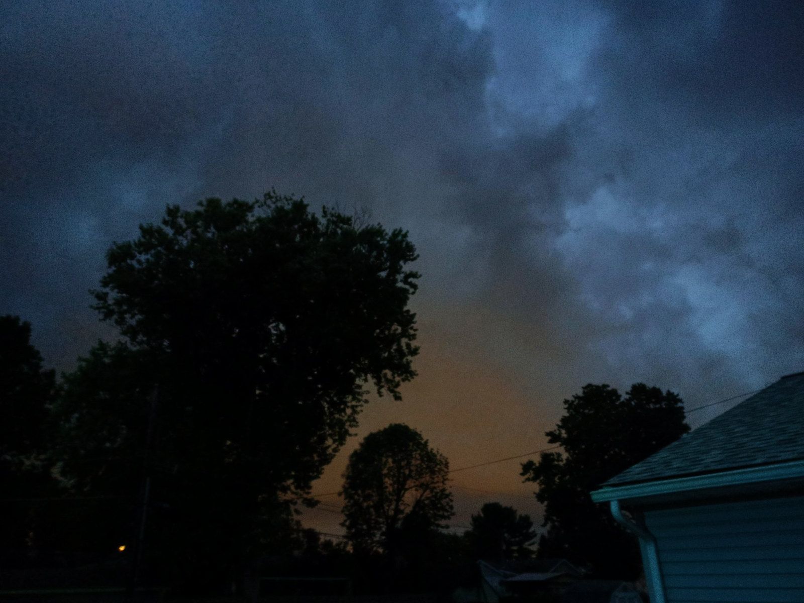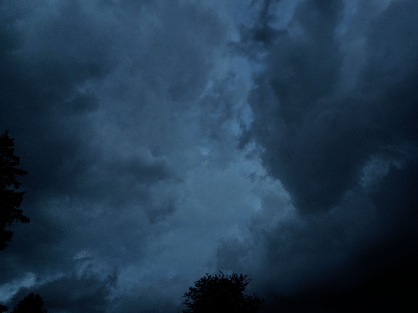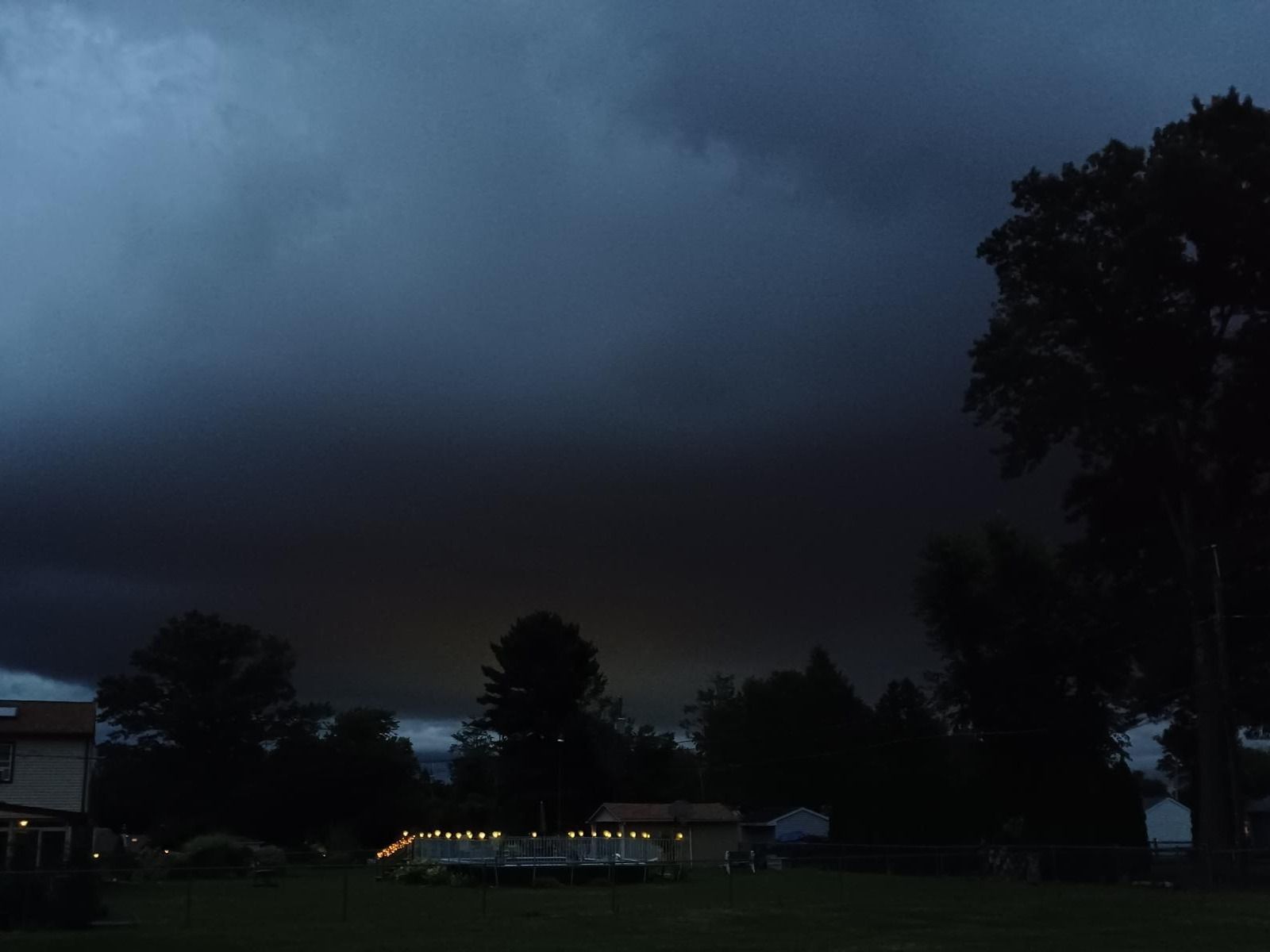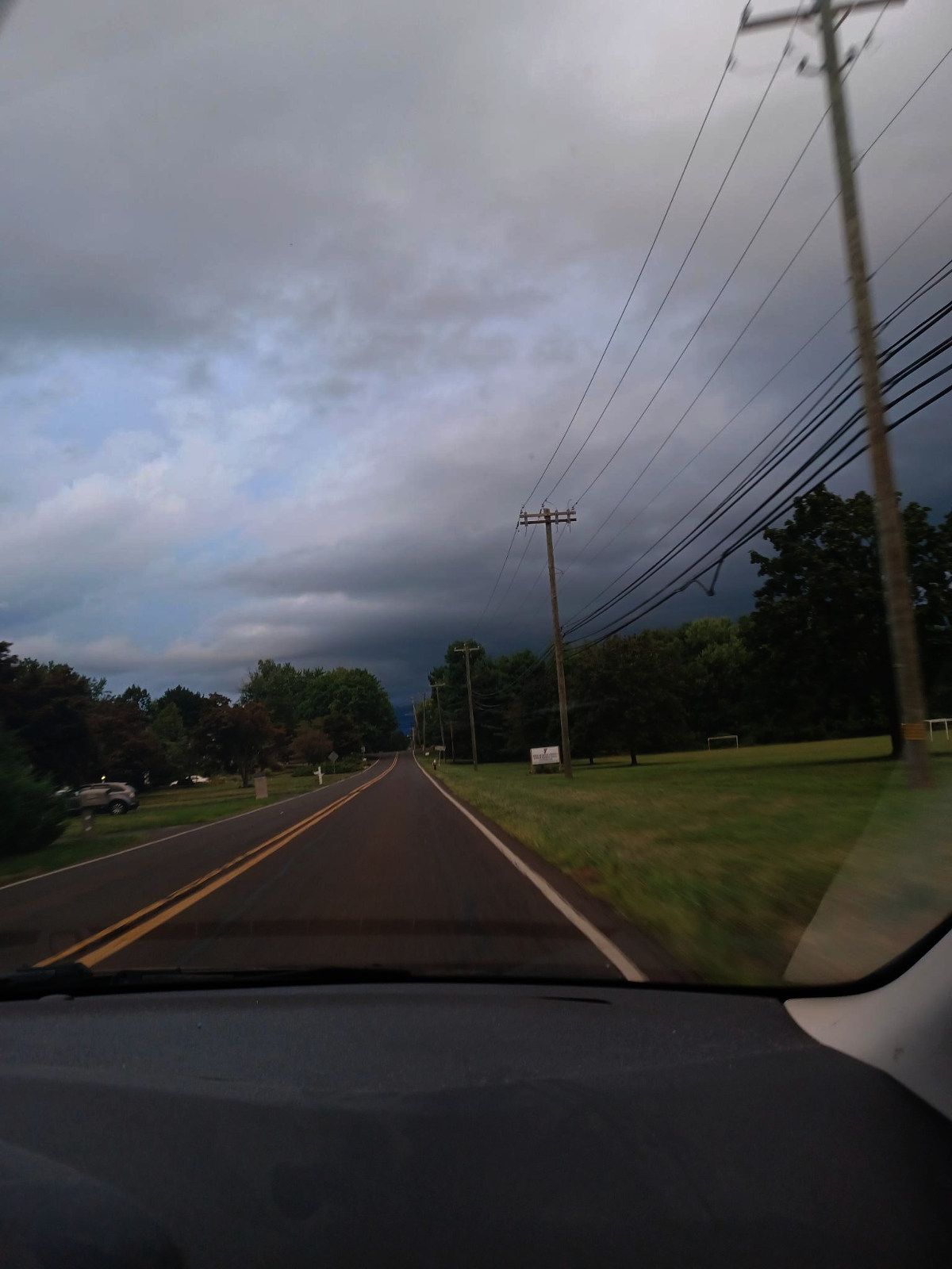 Kevin and I grabbed some travel coolers from his parents' and drove over to clean out my freezer and fridge. It was still clear in his area when we left, but by the time we got back the sky was dark and ominous looking!