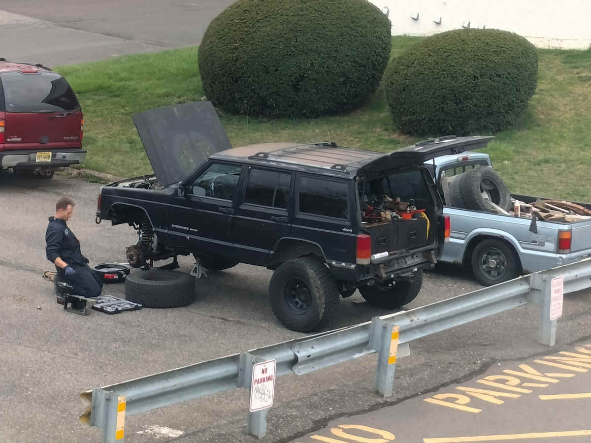 If I had a few hours with nothing to do, I'd probably edit this photo from last April, and digitally remove both vehicles so that it's just a picture of Cherkoff mourning his lost loves...