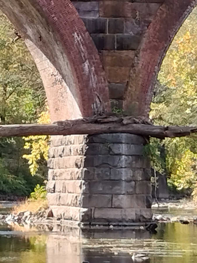 This is a log of driftwood, perfectly balanced on the tiny ledge of one of the pillars...