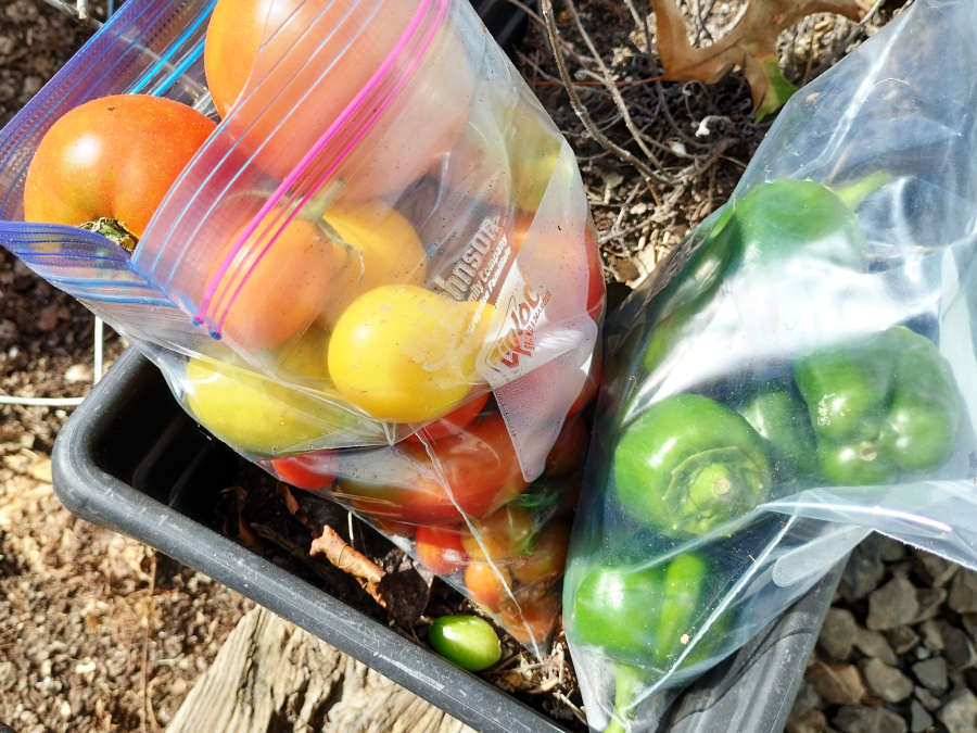 I harvested the last of our tomatoes and peppers before ripping out those plants and dragging them off to the compost pile; so, for the time being, if anyone asks what we're growing, the answer is basically "um... rosemary, mostly"...