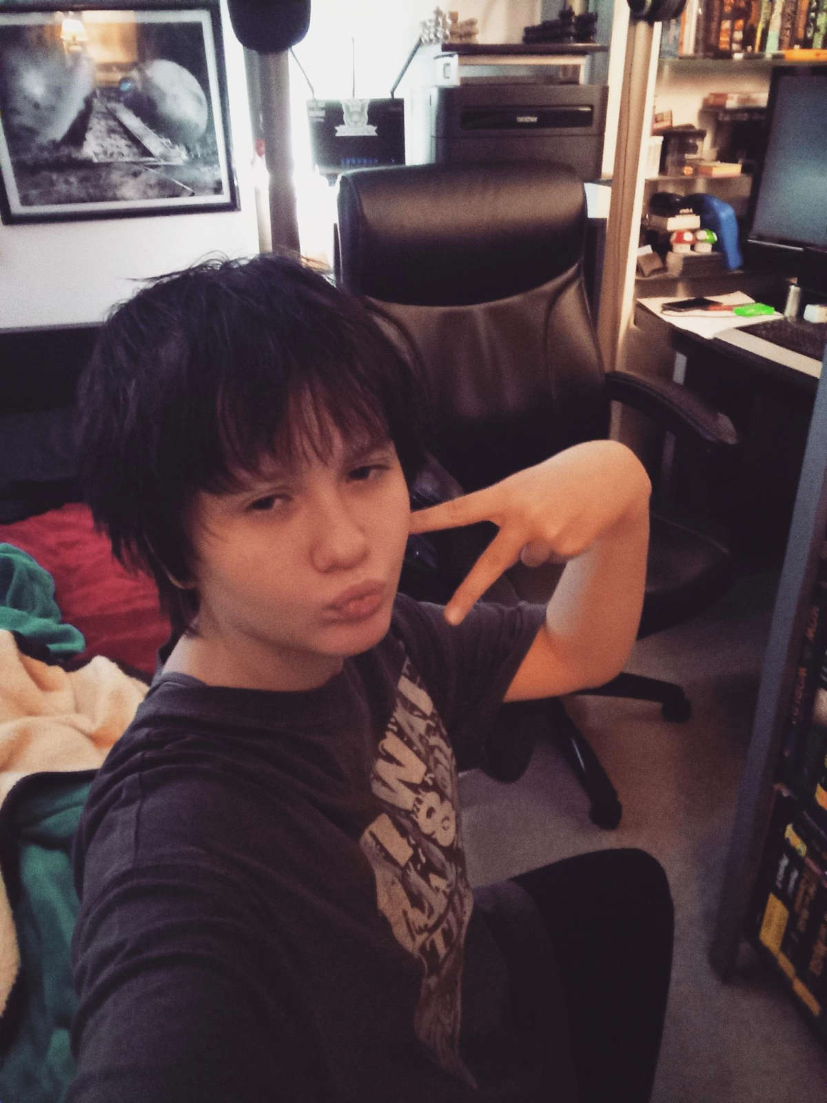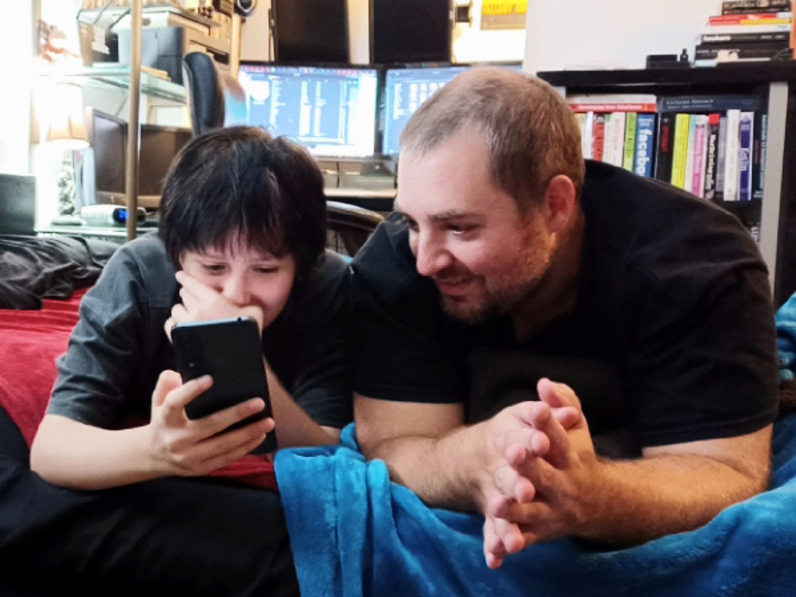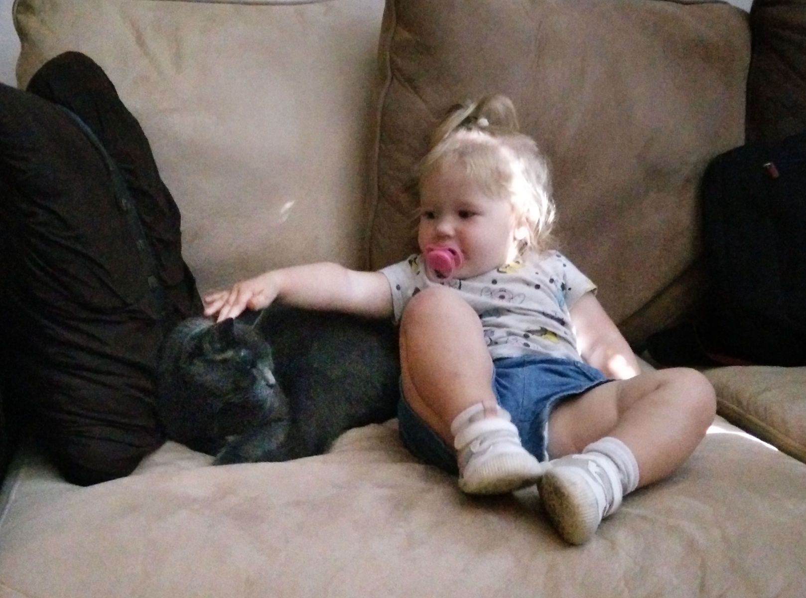 We went home to grab showers and hang out for the rest of the evening; and, even though we didn't get any decent photos of me and Riley together at the park, Athennia snapped this one later in the evening without either of us noticing.