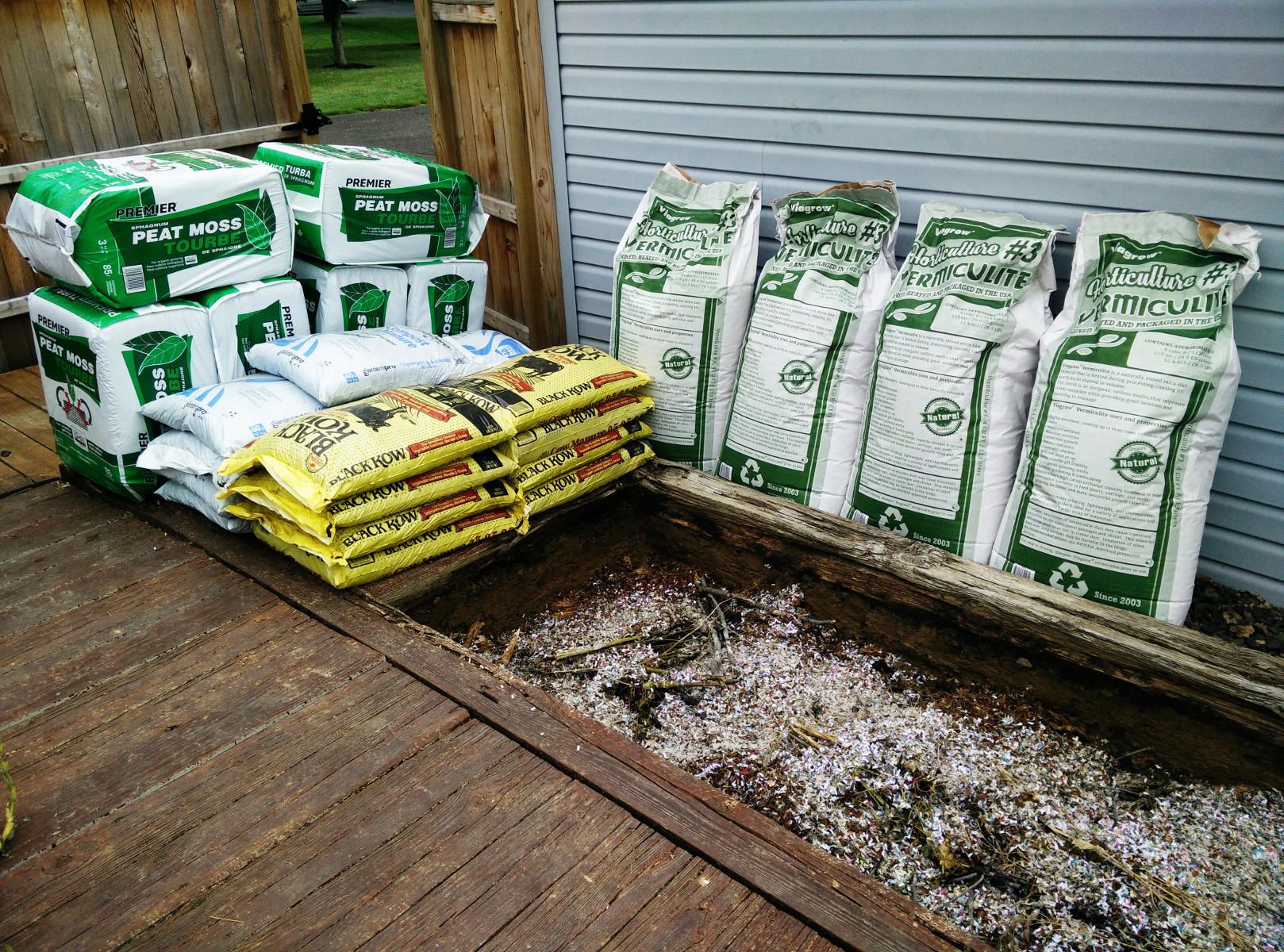 But, I figured I'd go with "Mel's mix": a 1:1:1 mix of peat moss, compost, and vermiculite (named for Mel Bartholomew of "square-foot gardening" fame).