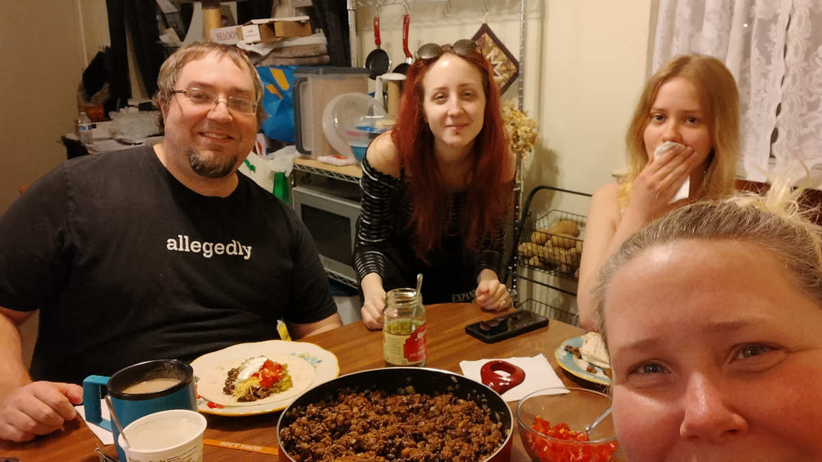 So she accompanied me to the laundromat for the afternoon, and Kevin had tacos ready to go for dinner when we got home: