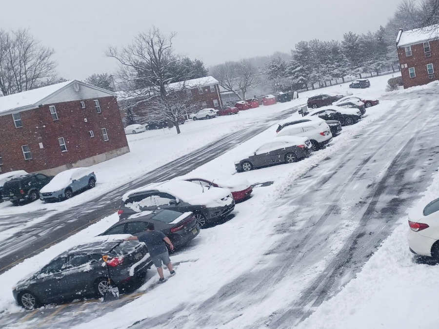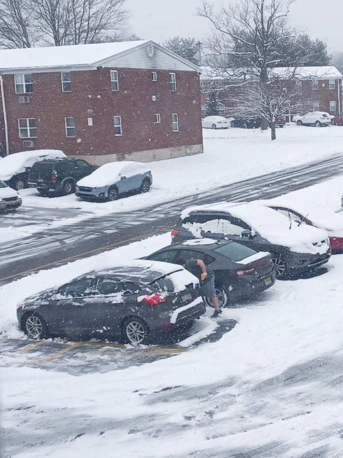 After the snow finally stopped, he went out to clean off my car: