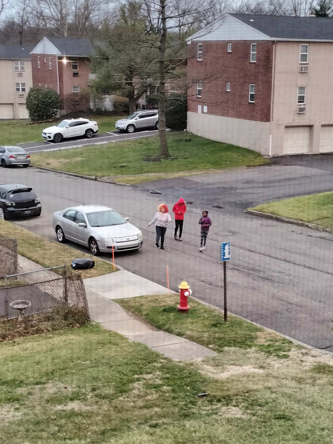 It only took a deliberate cough on my part to prompt Red Hoodie Kid to advise the other two about "a guy in the window up there"; and then the three of them resumed toddling along their way, in a convincing rendition of "We Wasn't Doin' Nuffins" (never mind one of poles boi-oi-oi-oi-oinging back and forth, as a result of Pennywise's damn-near-successful yoink attempt).