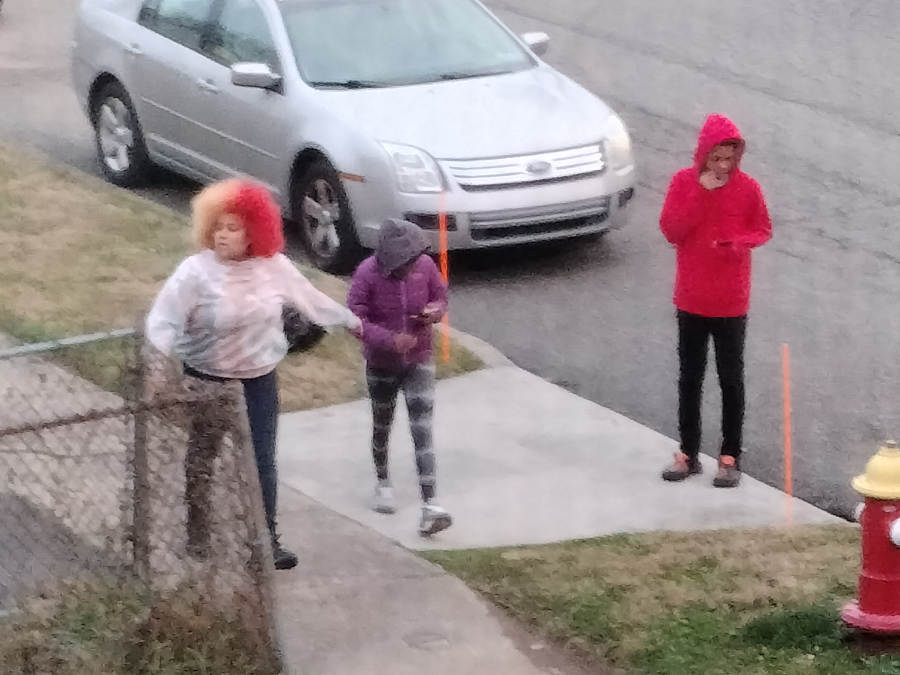 Given the excessive volume with which uncultured swine always insists on conducting itself, I heard these three pukes shrieking and, I don't even know—"holla-ing back" at each other—when they were still two blocks down the street... so, I had already been watching them for a minute or two before the moment they noticed the orange poles and made a direct bee-line for them.