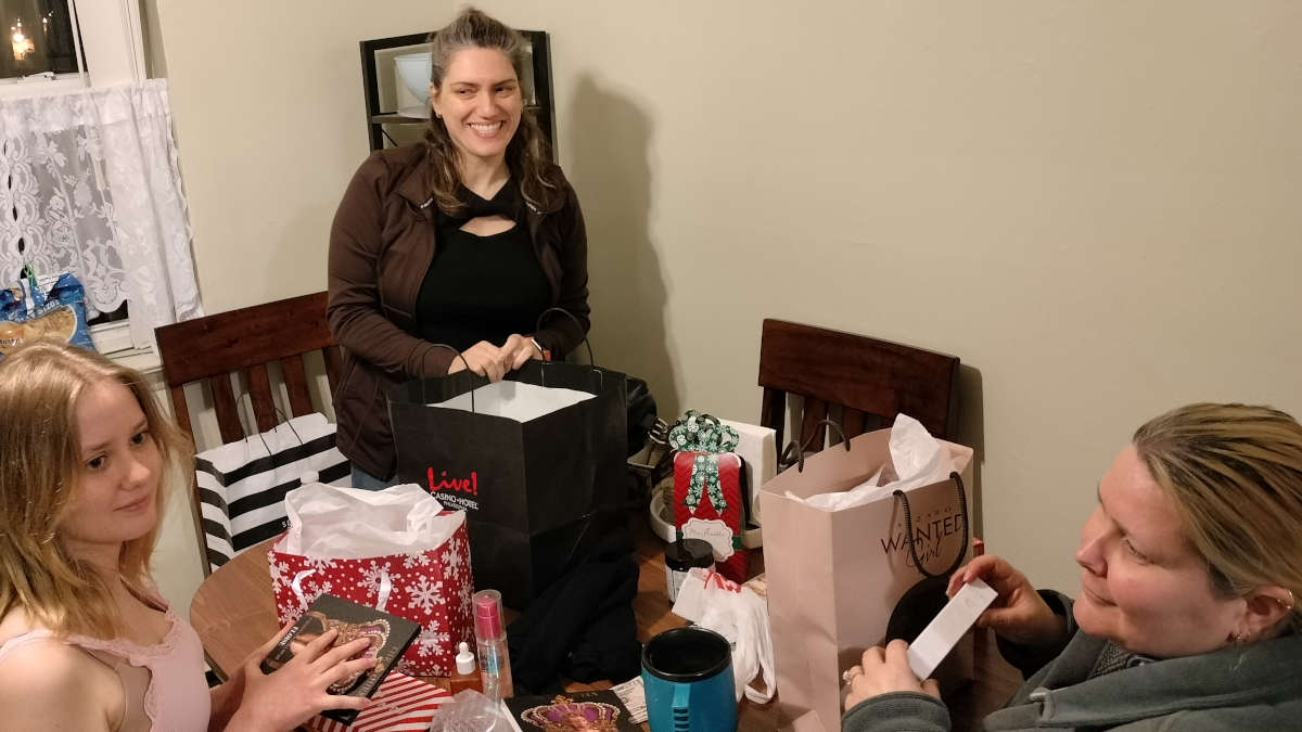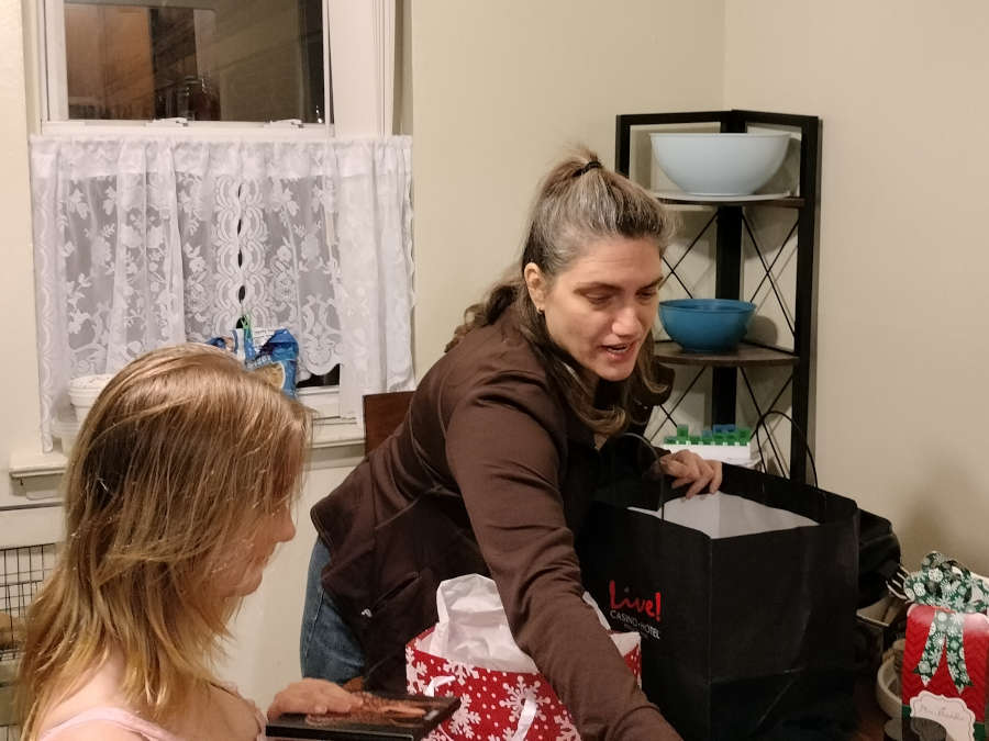 We looked over the paper until Athennia got home from work. Then Fotini gave us our presents and treated all of us to dinner from Wawa :)