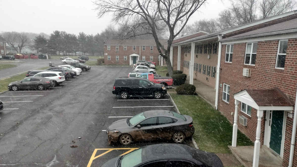 It only took a minute or two for us to realize that, every time the wind blew and the door rattled, the downstairs neighbors would bang on the ceiling...