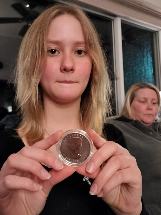 So, here's Riley with her first ounce of silver...