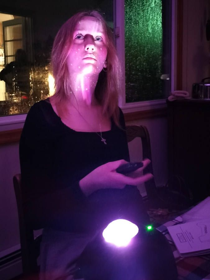 There are three LED lights—red, green, and blue—and each one can be toggled on or off at any given time, independently of the others.