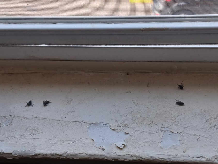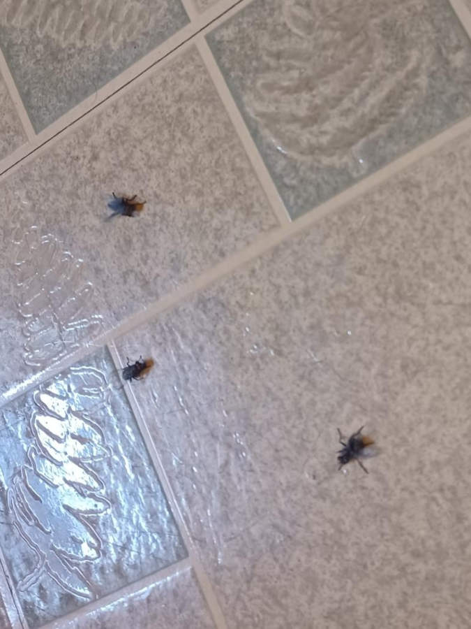 When I got home from work Friday and let myself into our building's main stairwell, I found an infestation of more than a dozen horseflies!