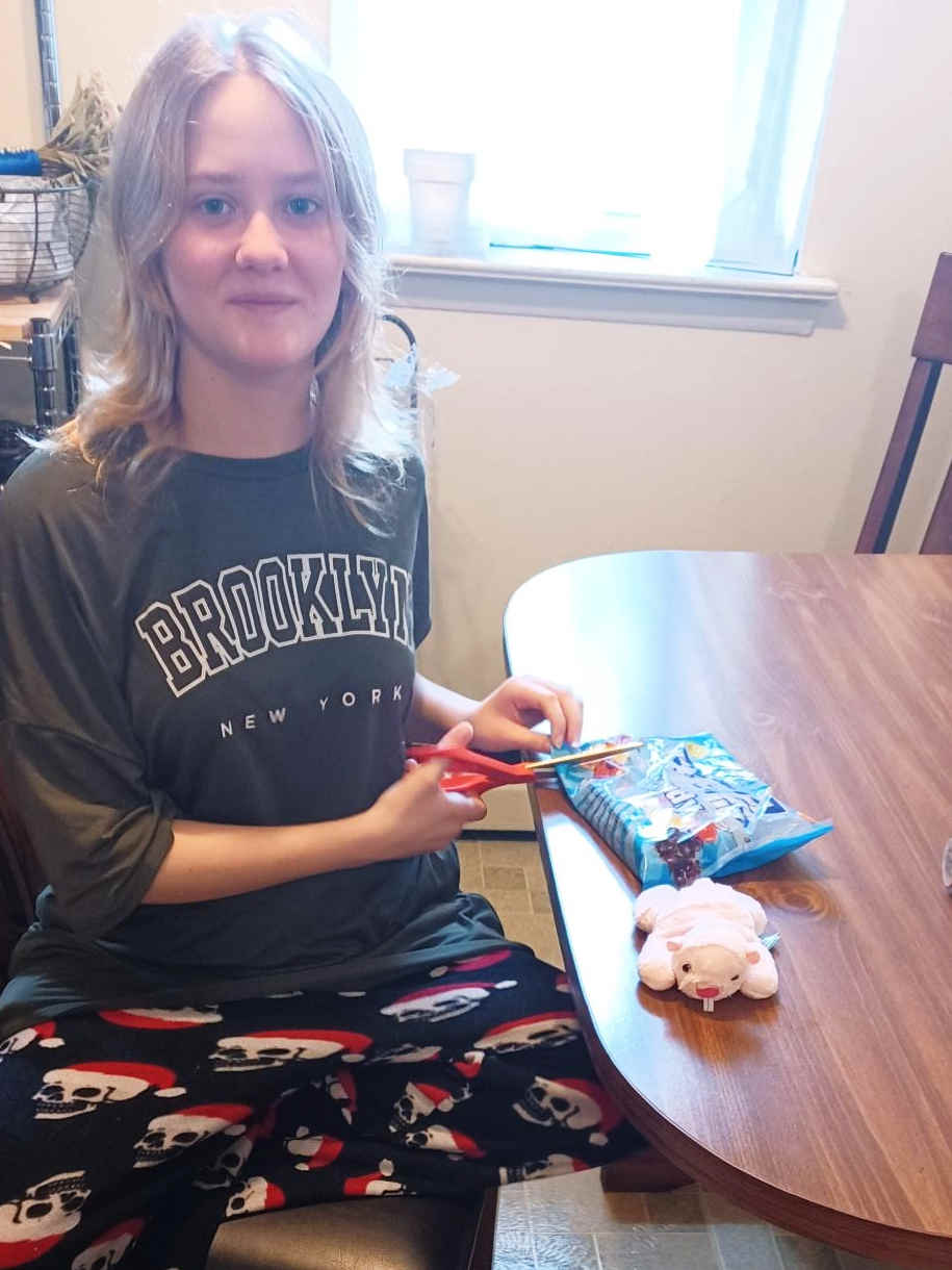 Riley saw where this was going and rolled her eyes as she reluctantly pulled out a miniature molerat plushie, but also an enormous bag of Pez candy that she's been bugging us for recently :)