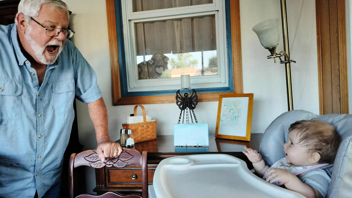 "Pop" is pretty much the best at getting smiles out of Hannah: