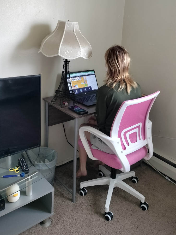 Finally, we dusted off Riley's laptop and fired it up to make sure she wouldn't have any issues logging in tomorrow for her first day of school.