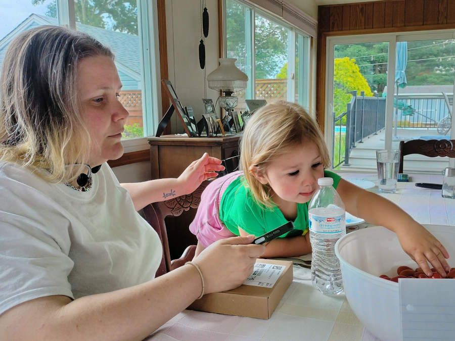 We got a nice tomato haul as well; and naturally, Hannah had to touch each and every one...