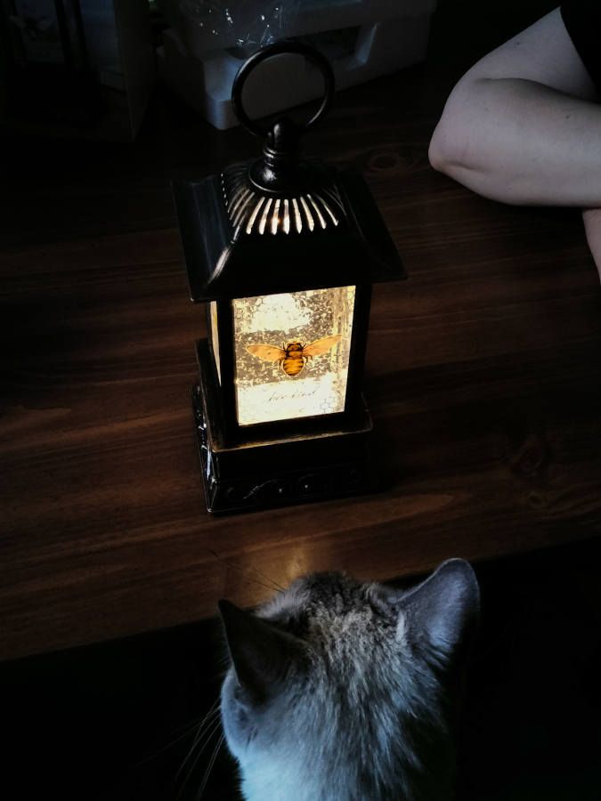 And lastly, Riley and I got Kitten a cute little bee lantern... since she's basically the bee version of the Pigeon Lady from Home Alone 2 at this point.