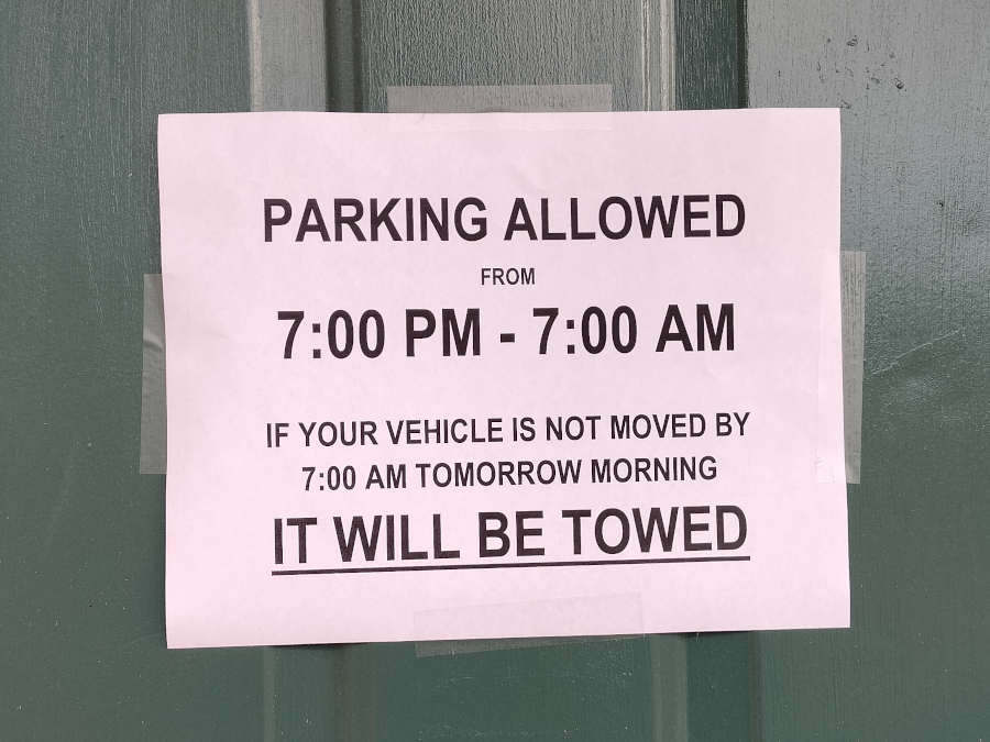 There had been signs posted on the main doors to all the apartments, stating that the parking lot would "re-open" at 4:00 P.M. on Saturday; and when we got home, I was pleased to find that our neighbor Ditz had parked her car in the as-of-right-now-unmarked handicapped spot (thereby preventing Fuggy from monopolizing it).