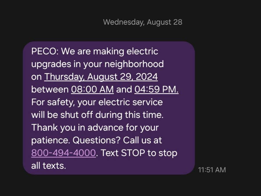 We got some lovely news from our fiends at PECO Wednesday evening...