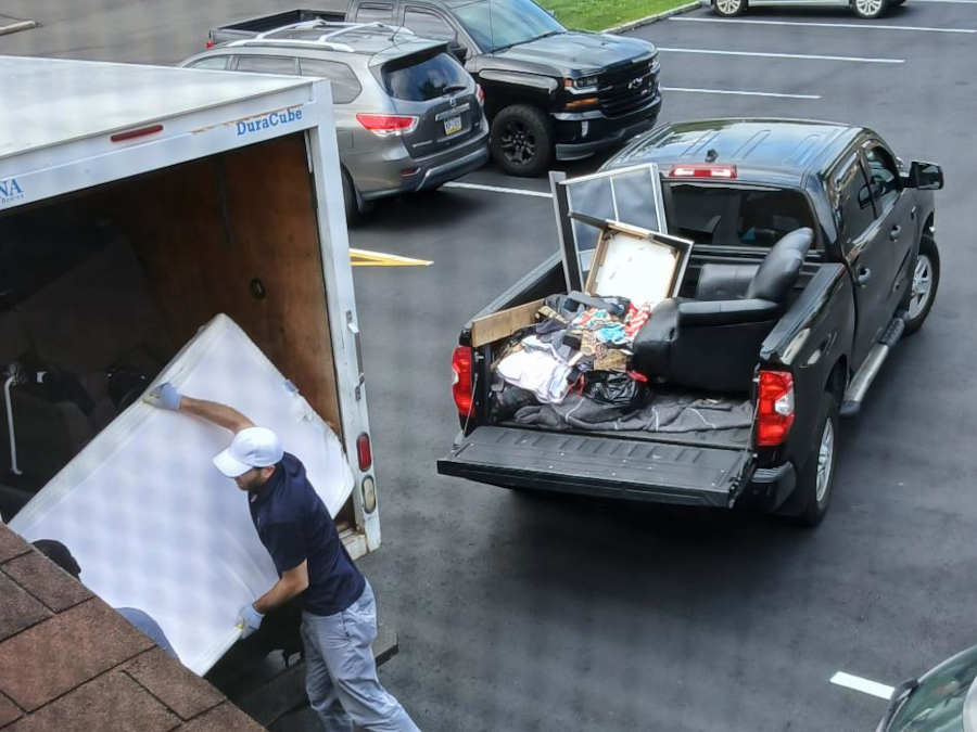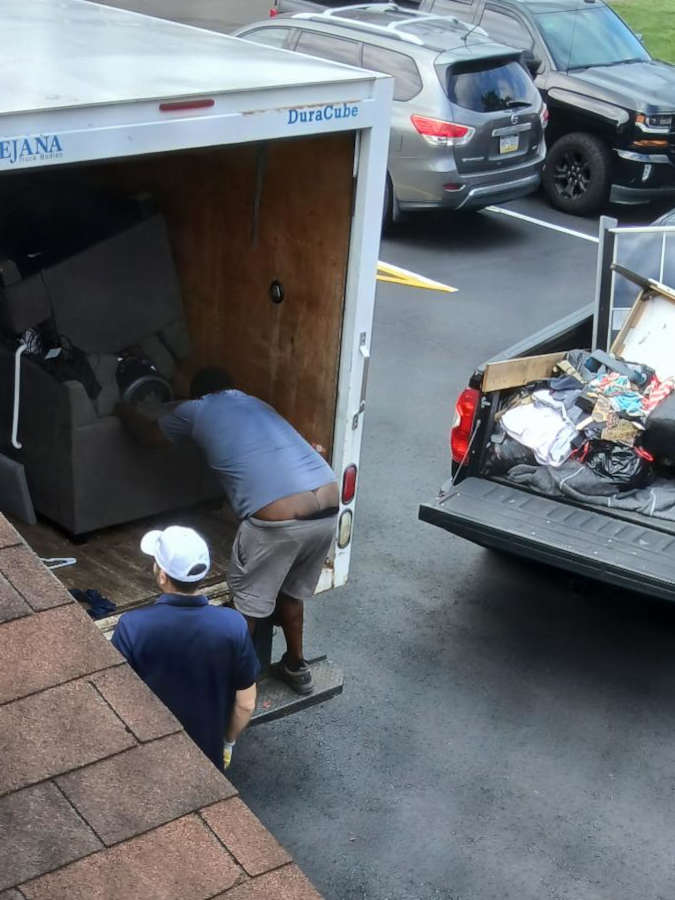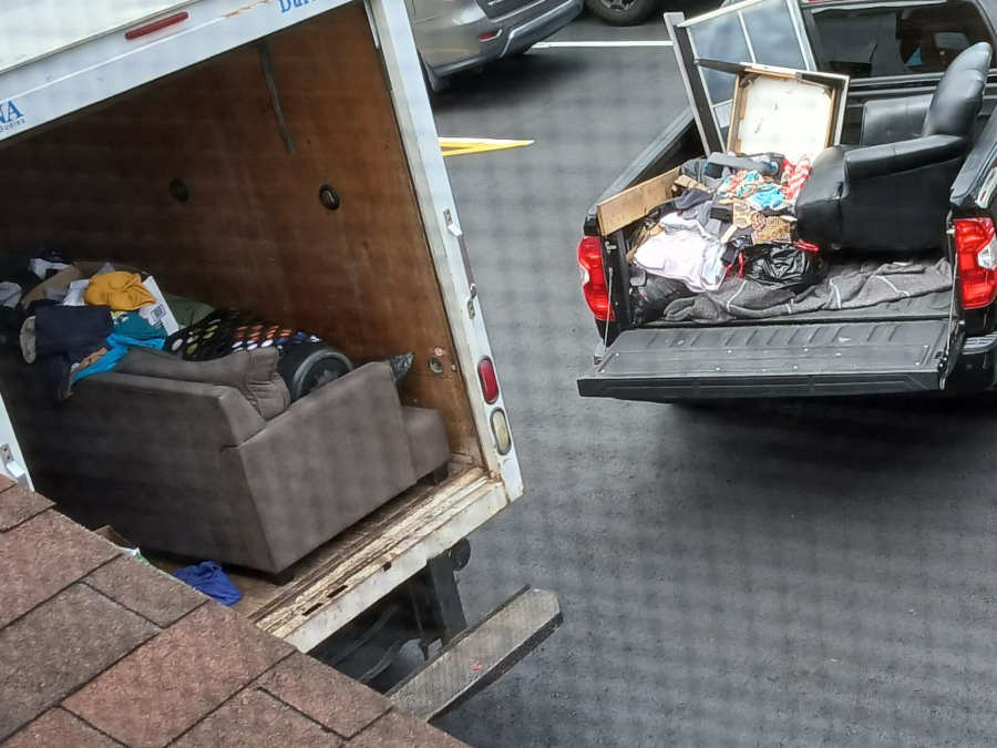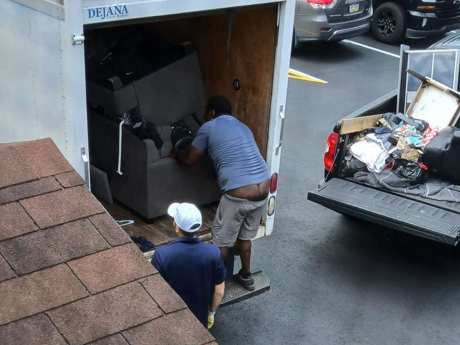That was the last we saw of them until this afternoon—when they showed up with a box truck and a small pickup truck.