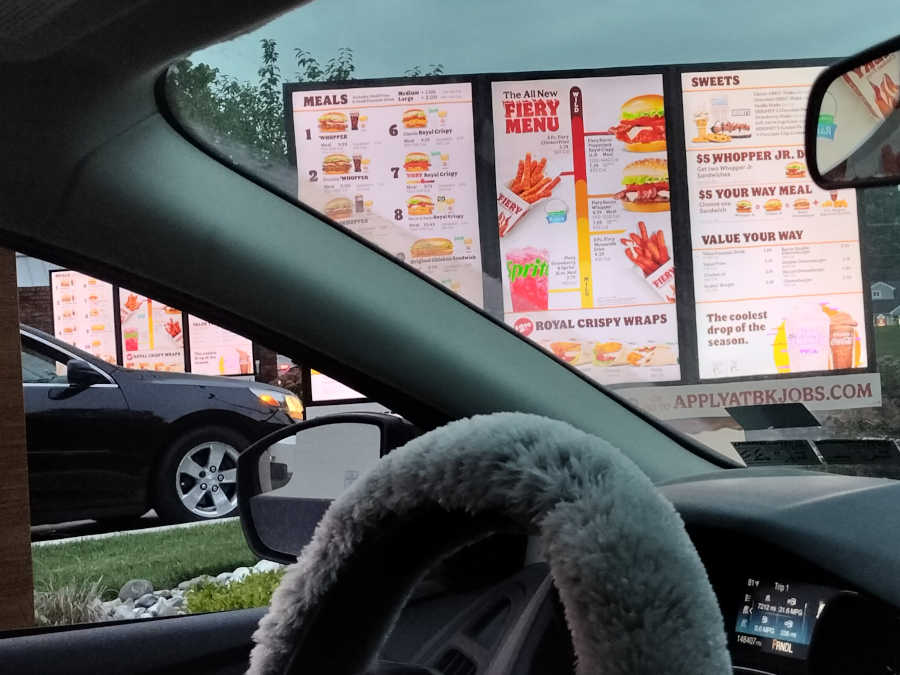 We sat there for probably six or seven minutes. Then I took stock of the seven-car standstill ahead of us at the drive-thru windows, the line in the other drive-thru lane, and the line behind us in our lane.