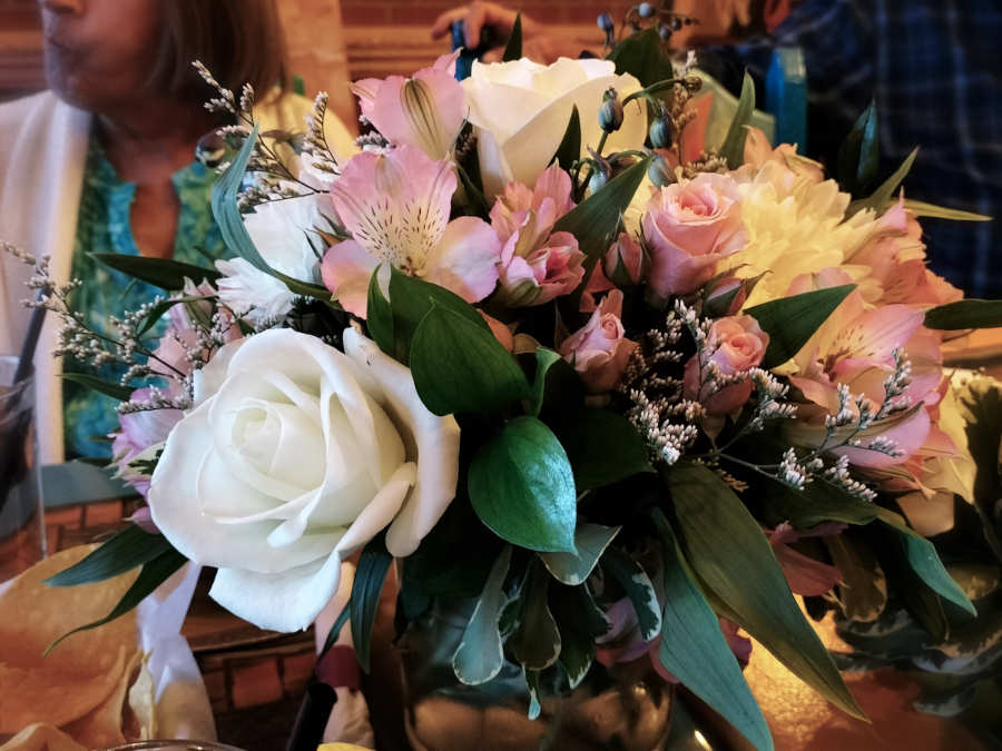 Our lovely flowers were compliments of Woods Services' Yellow Daffodil Flower and Gift Shop in Langhorne. (Kelly is the director of Woods's vocational program for people with special needs.) They do great work, and we were happy to give them our patronage :)