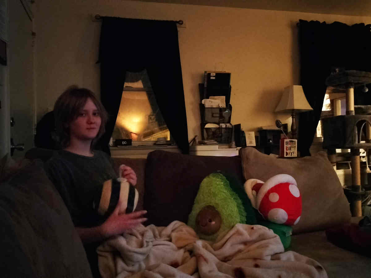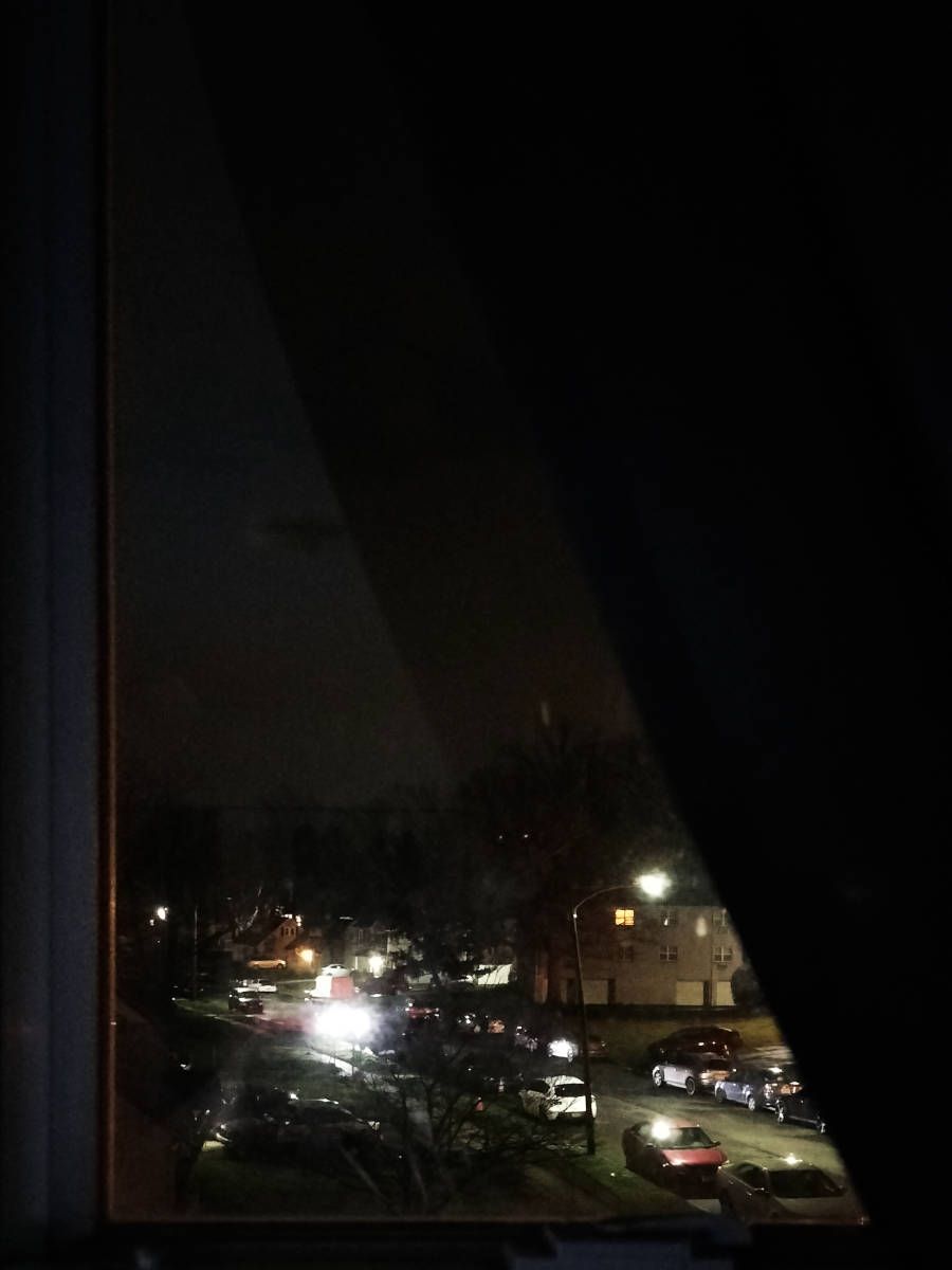 Also, our particular building was the only one in the whole complex (and the general area at large) that had lost power. So, we went upstairs to check on the cats and get them some dinner; and then we headed back out to Athennia's car and started watching Ready Player One on her phone.