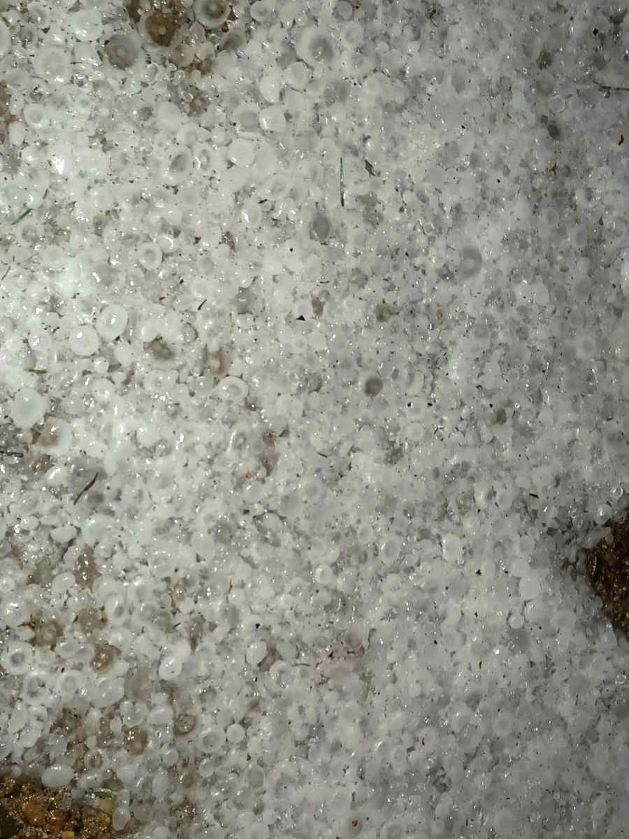 At first glance, I thought it had snowed at the apartment. But on closer inspection, it turned out it was hail—mostly the size of marbles, but some as big as grapes...