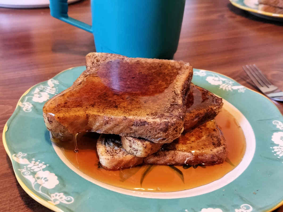 Athennia said she'd get started on breakfast, and surprised me with French toast instead of our usual breakfast sandwiches...