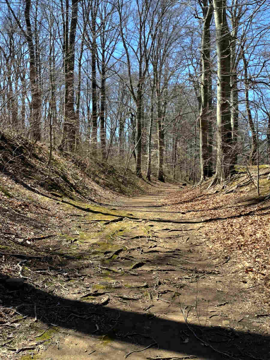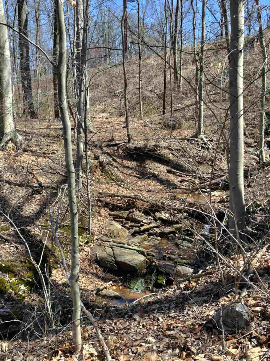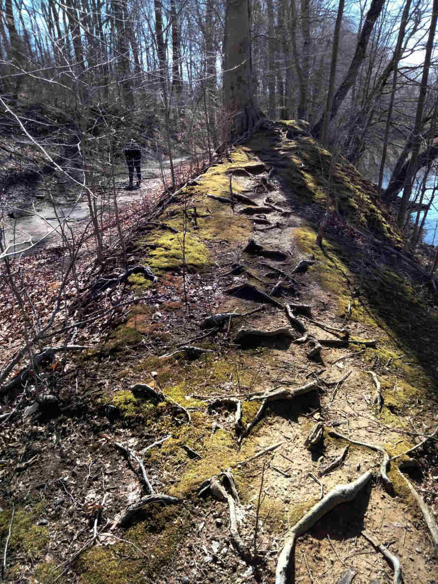 Riley's eyes lit up when we came to the ridge path just inside the start of the woods: It's this cool natural causeway that runs right along the creek, and I've always been pretty mesmerized by it as well...