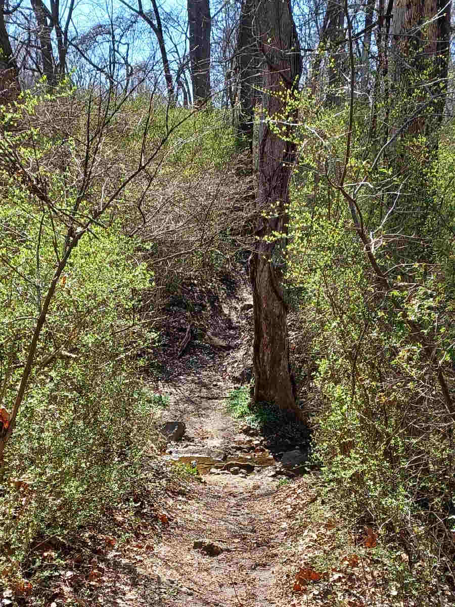 The park is bounded by the creek on one side and a disused railroad track on the other; so, you're pretty much just traveling in the same direction the entire time...