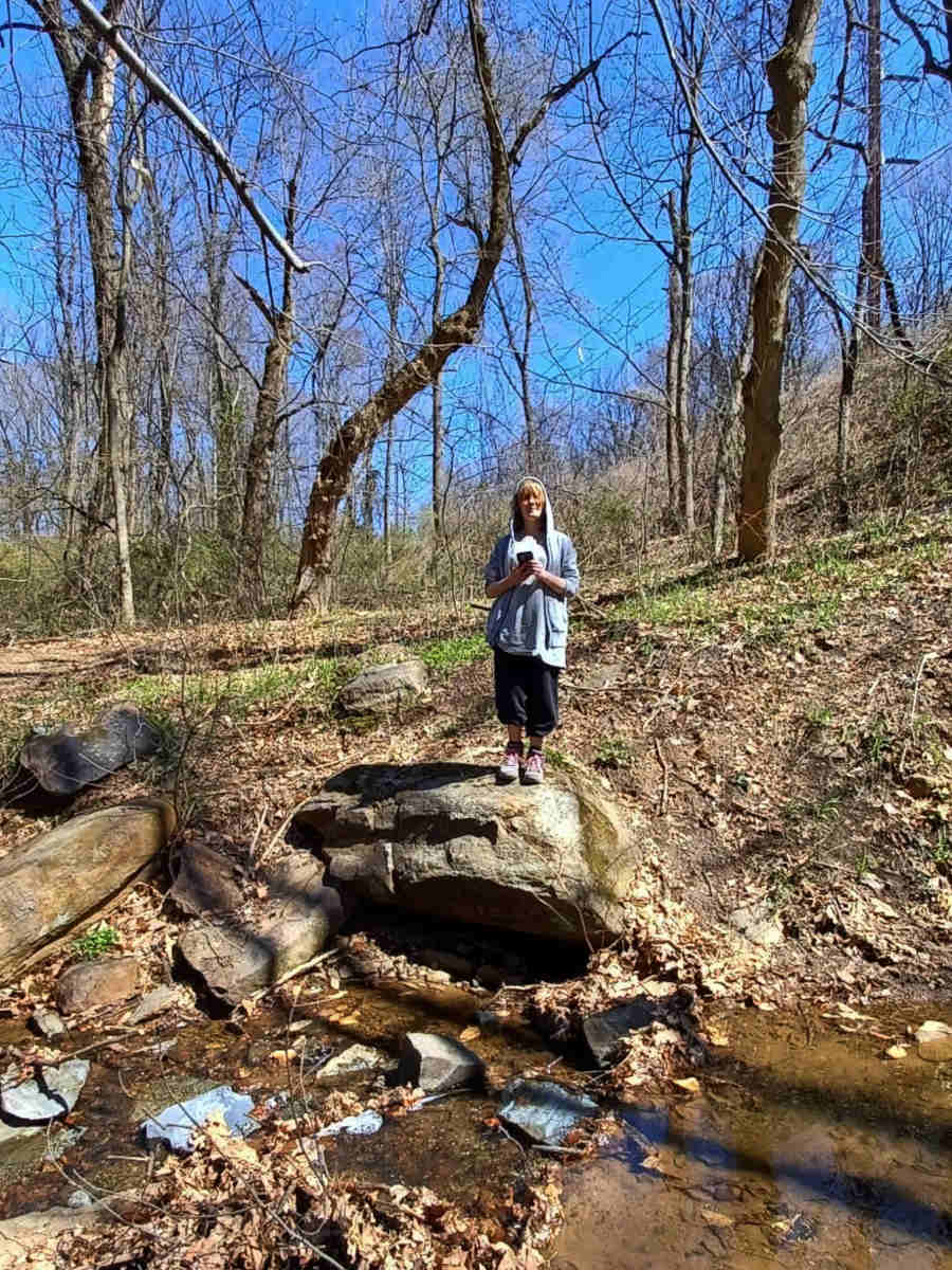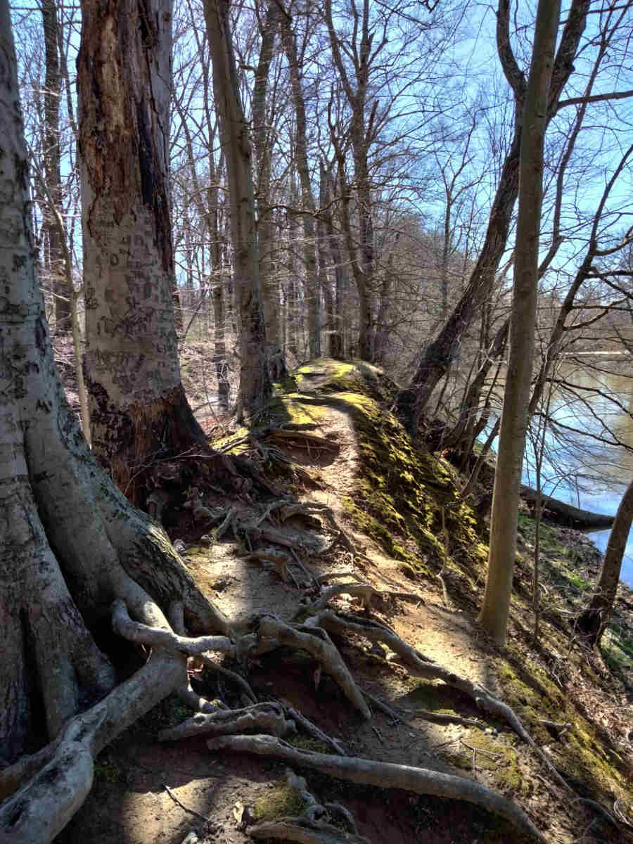 We decided to skip the rock beach by the bridge just inside the park entrance where everyone goes, and we headed right for the woods...