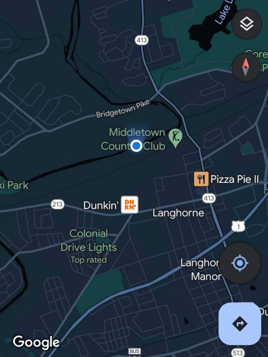 Anyway. we could already hear the traffic from Rt. 413 in Langhorne, and a quick glance at the map confirmed how close we were...