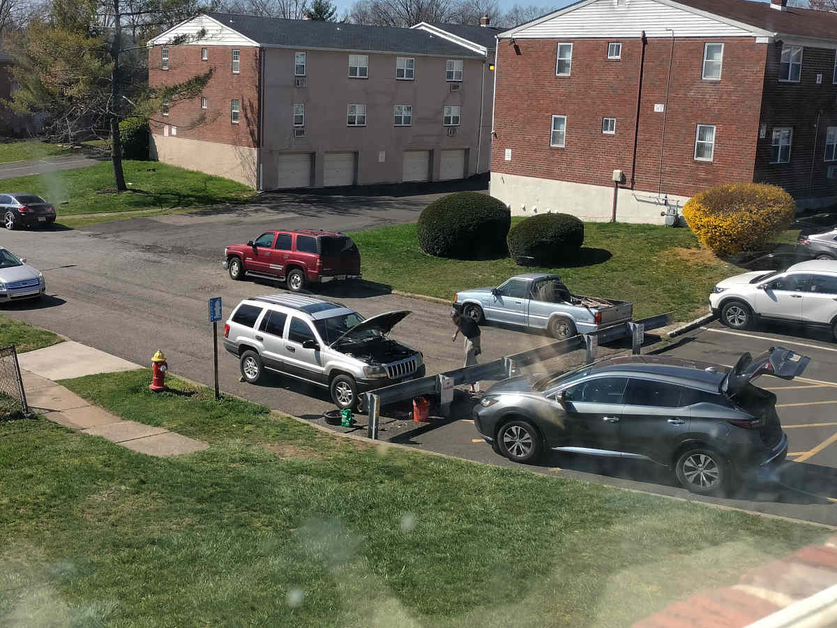 But imagine my surprise when Hydrant Hal pulled up just before noon and popped his hood to do an oil change right in front of the fire hydrant.