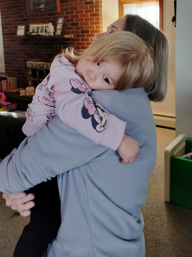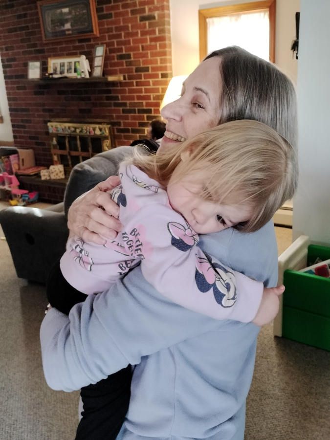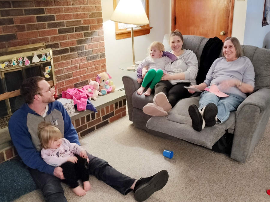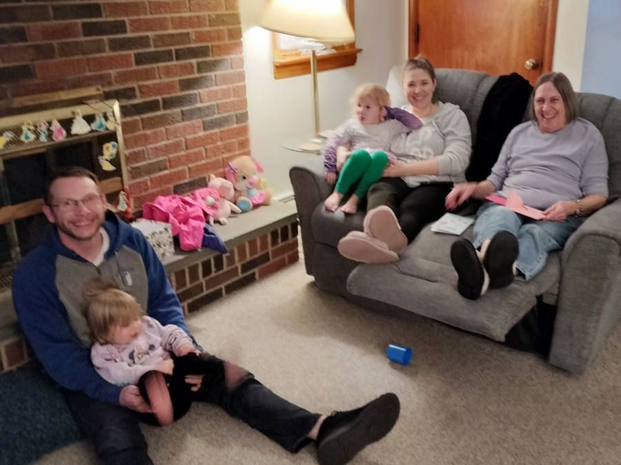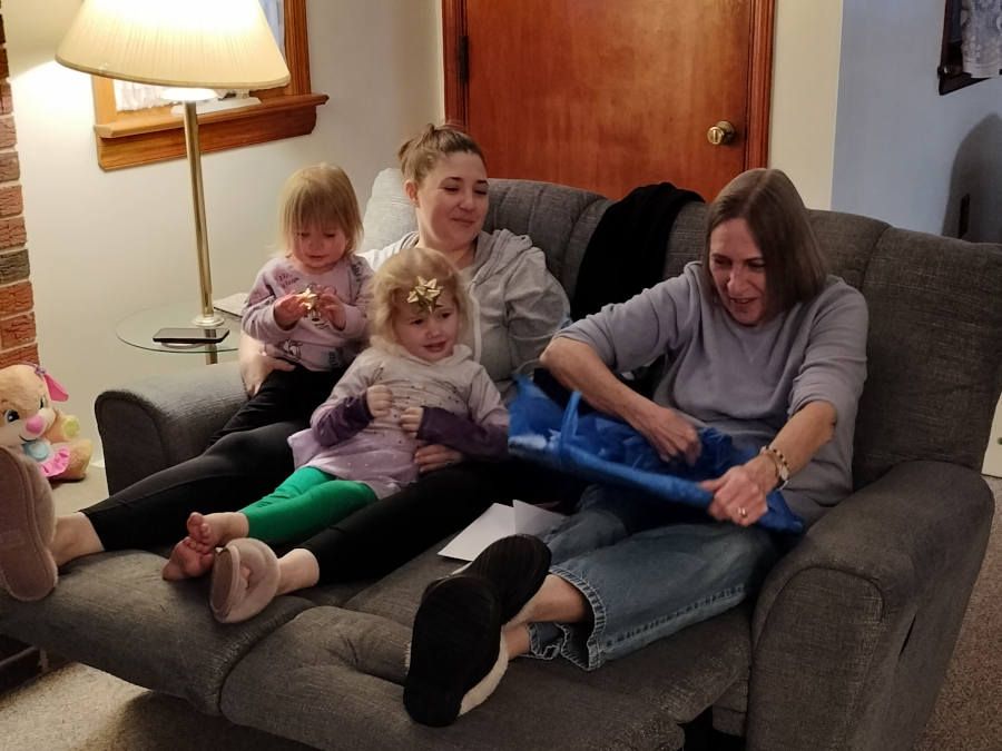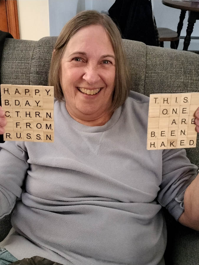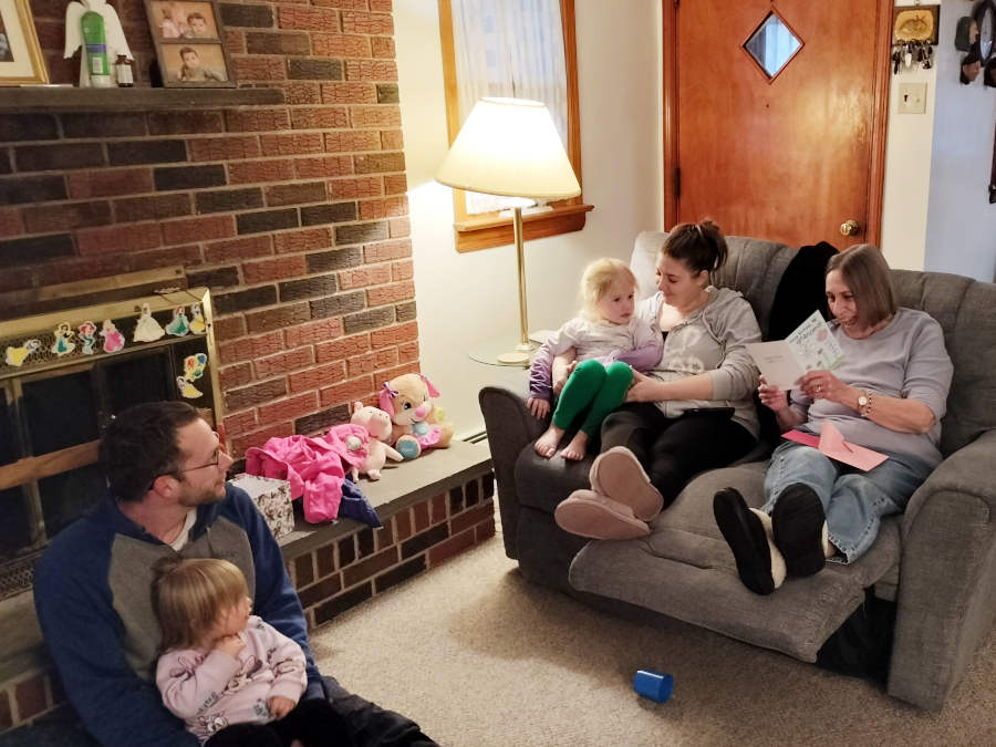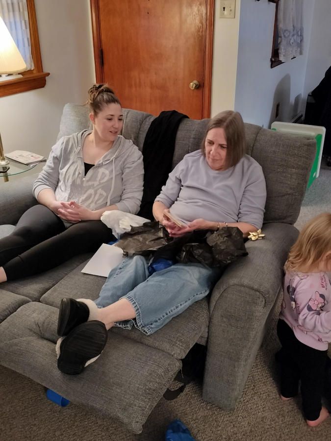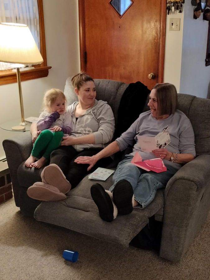 Here's my mom getting hit right in the feels by a birthday card (and also, Liv's brain must've been itchy)...