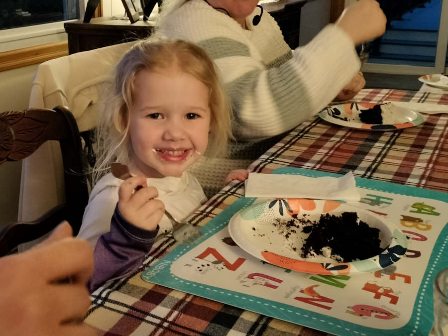 Then it was time for cake—and, if it's my mom's birthday or Kelly's, you know it's gonna be chocolate with white icing...